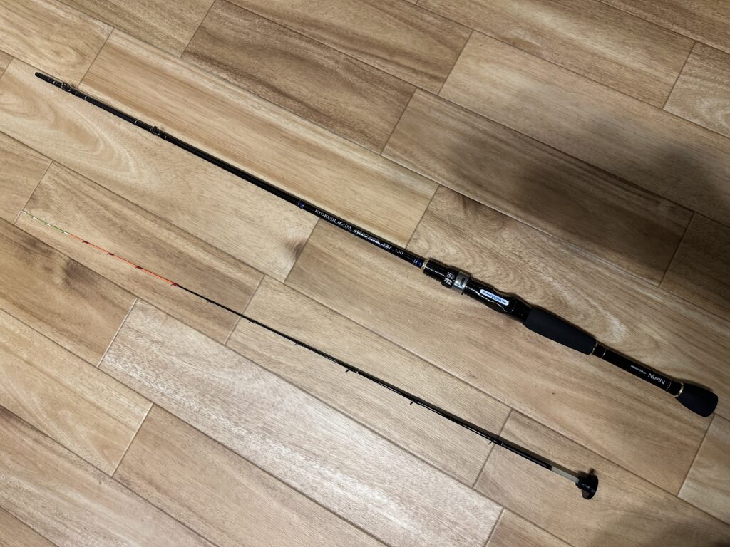 • 竿(ロッド)→ 宇崎日新 極技 筏 ハイブリッドメタル 先調子(並継) 150サイズ
